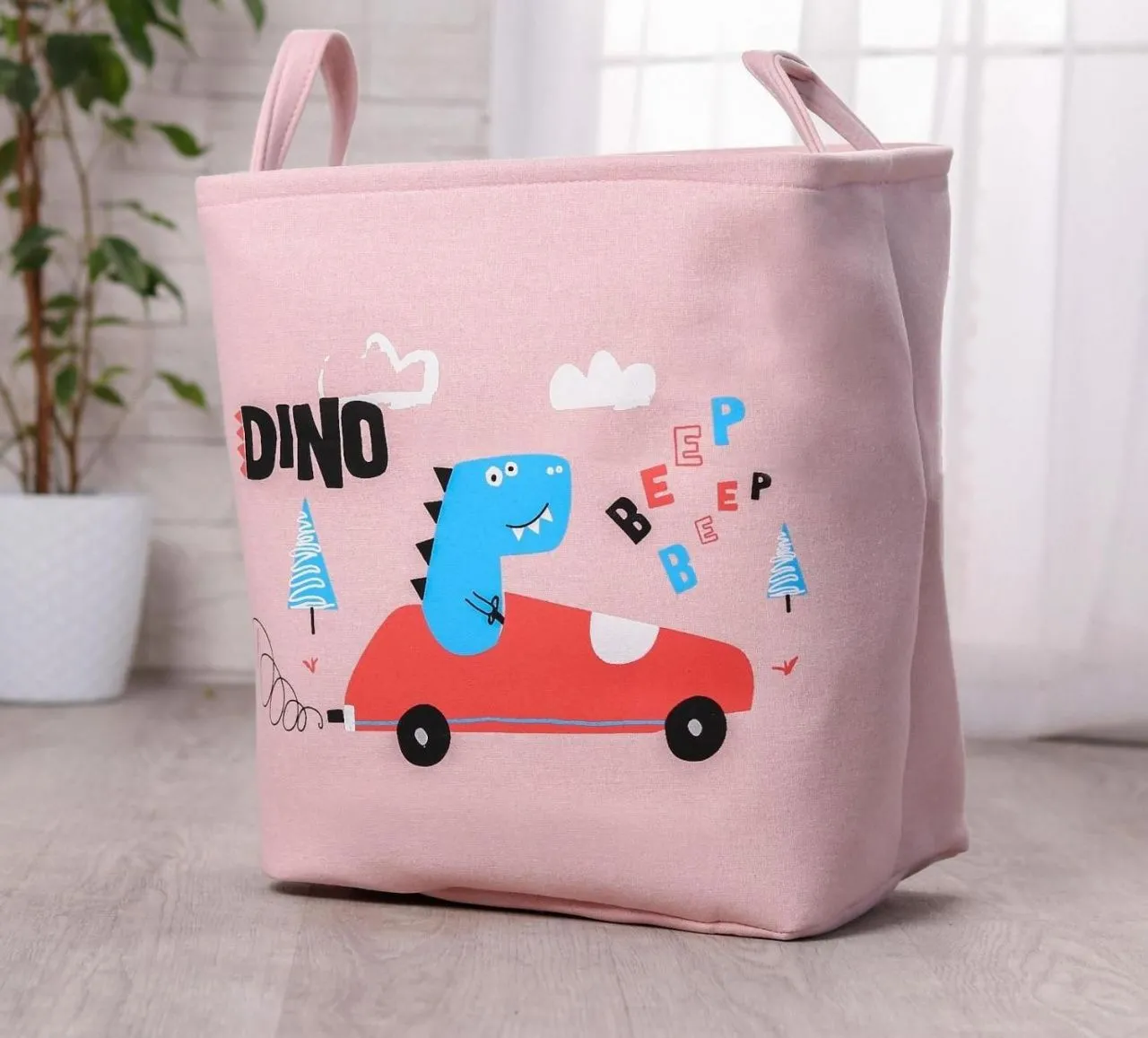 Корзинка для игрушек прямоугольная "Динозаврик водитель" 25х36х40 см 4731790