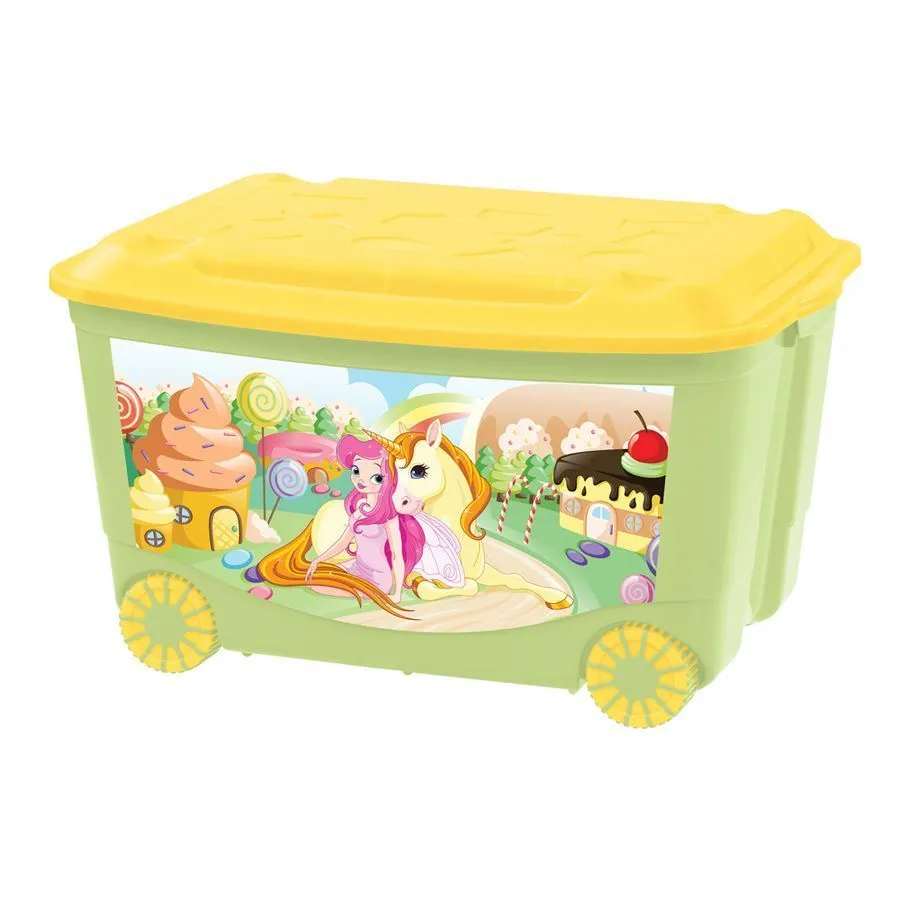 ЯЩИК ДЛЯ ИГРУШЕК НА КОЛЕСАХ 580Х390Х335 ММ С АППЛИКАЦИЕЙ (САЛАТОВЫЙ)