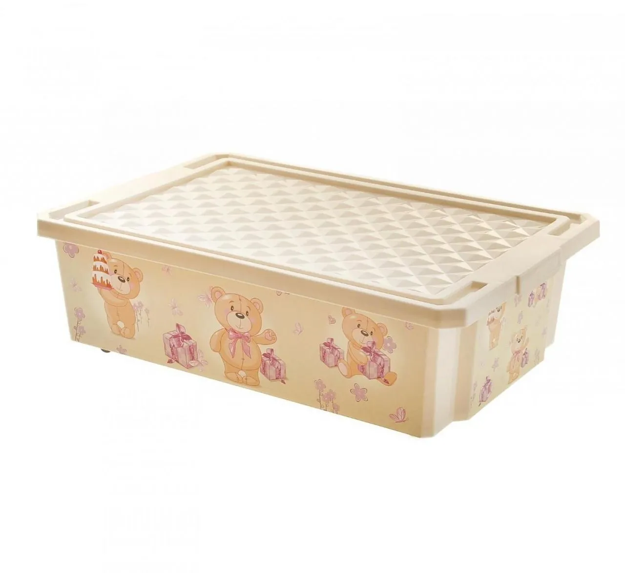 Детский ящик для хранения игрушек X-BOX Bears 30л на колесах слоновая кость
