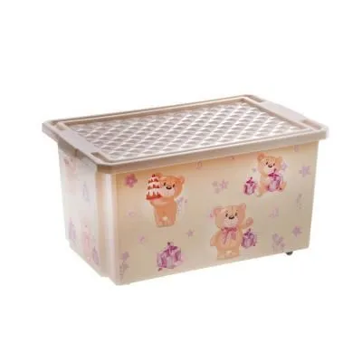 Ящик для игрушек на колесах с декором " ГОРЫ", 66,5Л, 685х395х385 ММ (Светло-голубой)