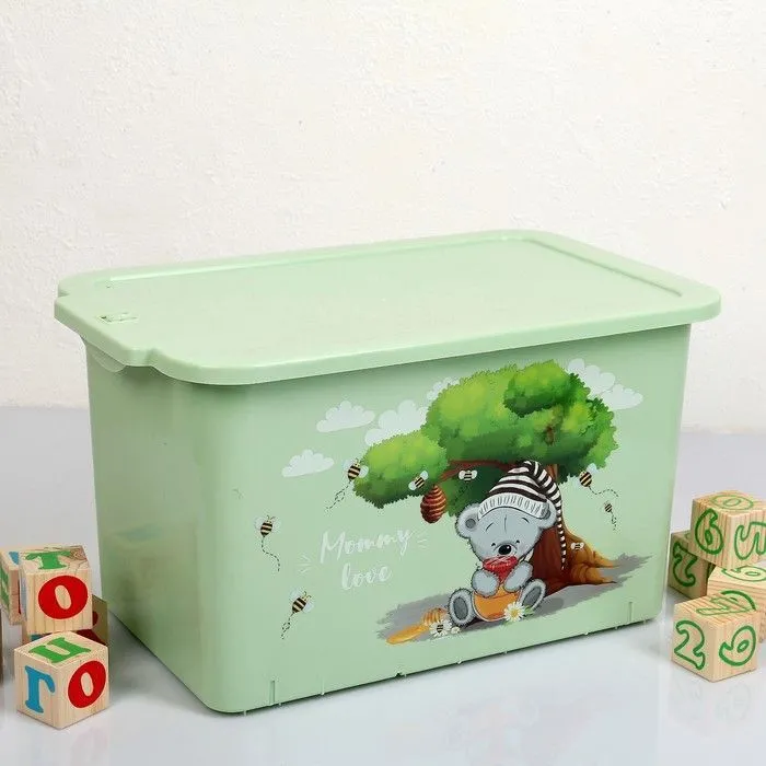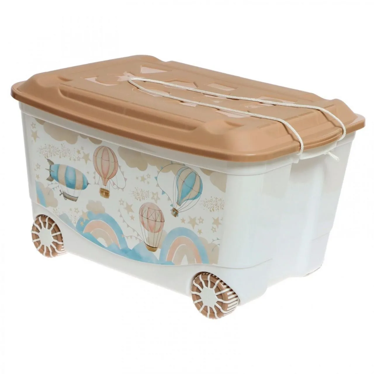 ЯЩИК ДЛЯ ИГРУШЕК НА КОЛЕСАХ С ДЕКОРОМ "ВОЗДУШНЫЕ ШАРЫ", 580Х390Х335 ММ, 45Л (Темно-бежевый)