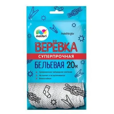 Веревка бельевая с металлической нитью, 2 мм, 20 м цвета микс 1115942