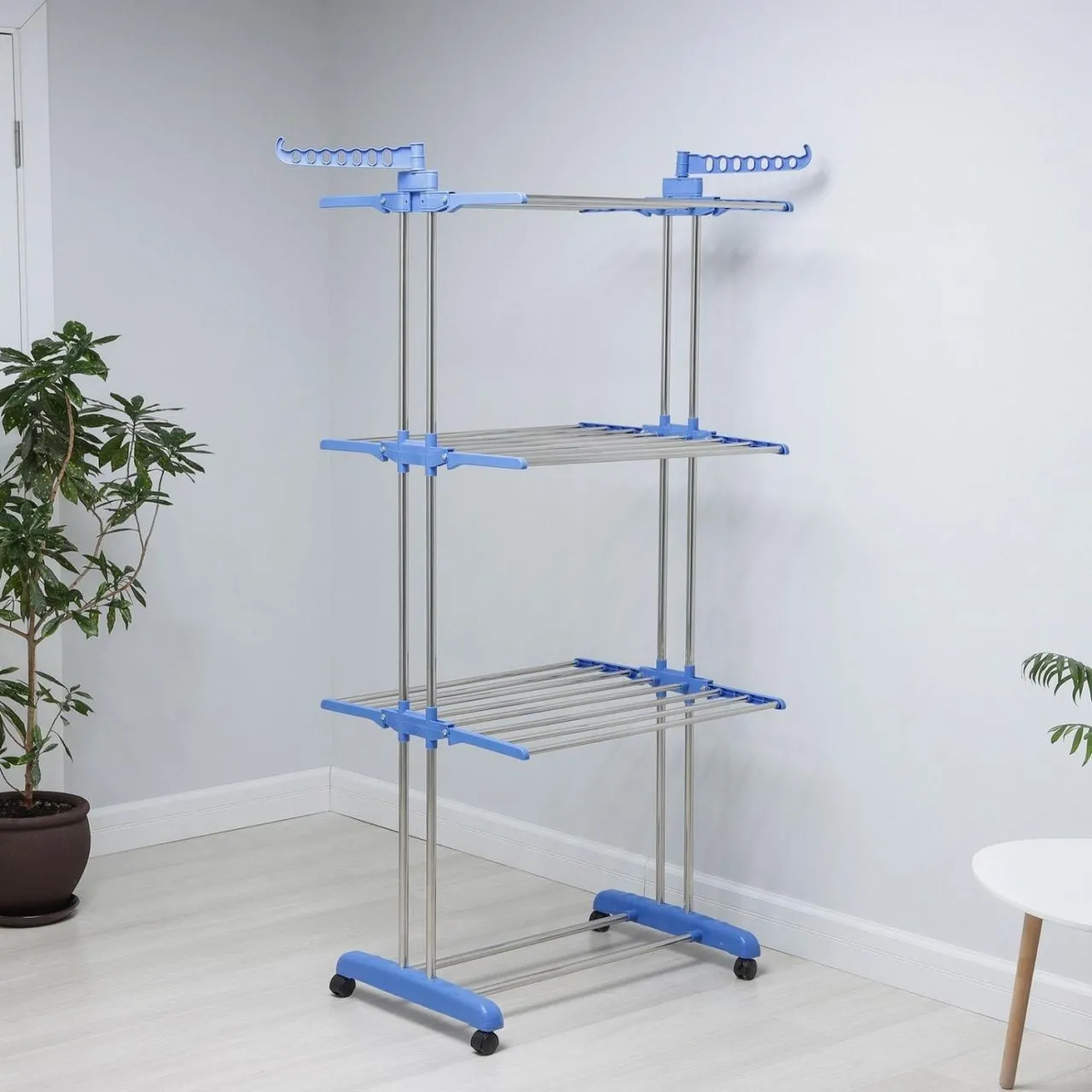 Сушилка для белья напольная 75(126)х64х170 см, 16 м, 3х-уровневая на колесах, нерж.сталь 2542686
