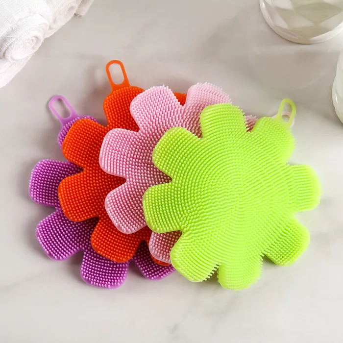 Губка для чистки посуды силиконовая "Цветок",12х12х1,5 см, цвет МИКС 4301999