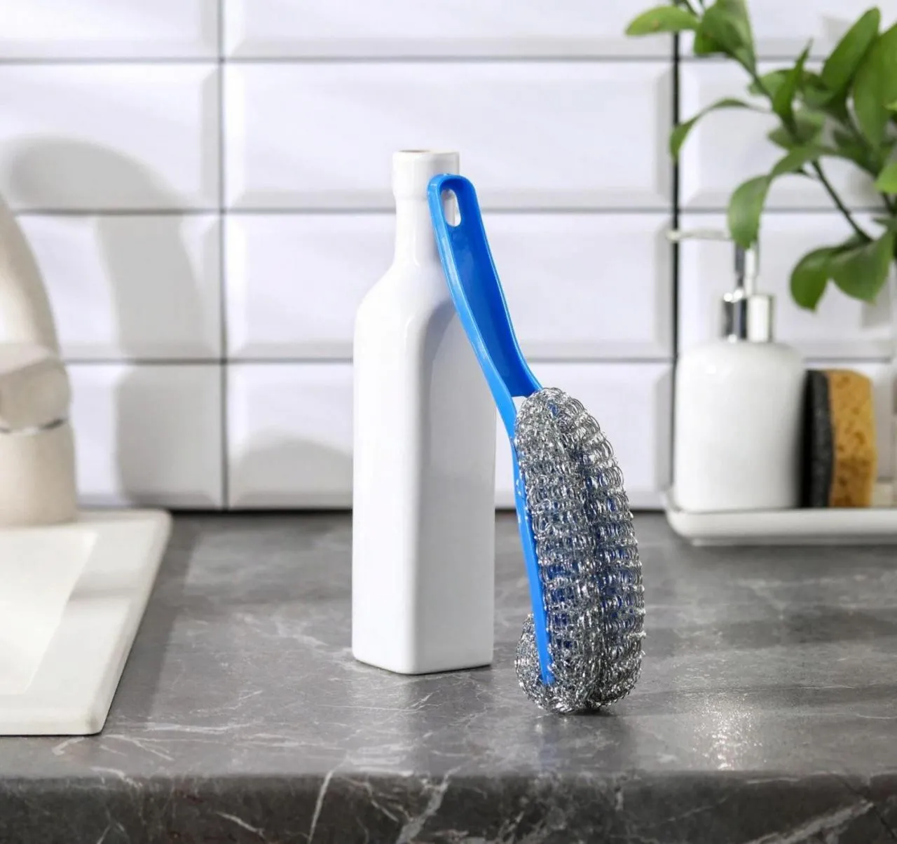 Губка для посуды металлическая с ручкой 24х5 см 1406047