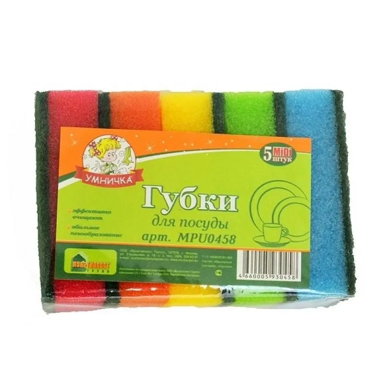Губка для мытья посуды "Версаль" 5 шт, 90*65*35 крупнопористый поролон TM Raccoon 7444205