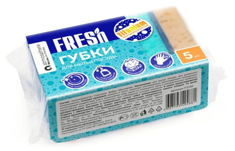 Губка для мытья посуды крупнопористые FRESH Titanium, 5 шт ATMOSPHERE, арт F3169