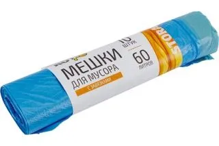 #Мешки для мусора 60л/10шт,15мкм,ПНД,завязки,черные,рулон, 310325 Рыжий Кот