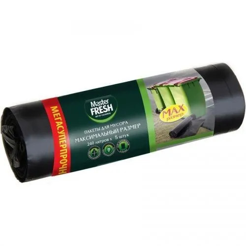 Пакеты для мусора 240л 100*130см максимальный размер суперпрочные 40мкм, 5 штук (ЧЕРНЫЕ) Master FRESH