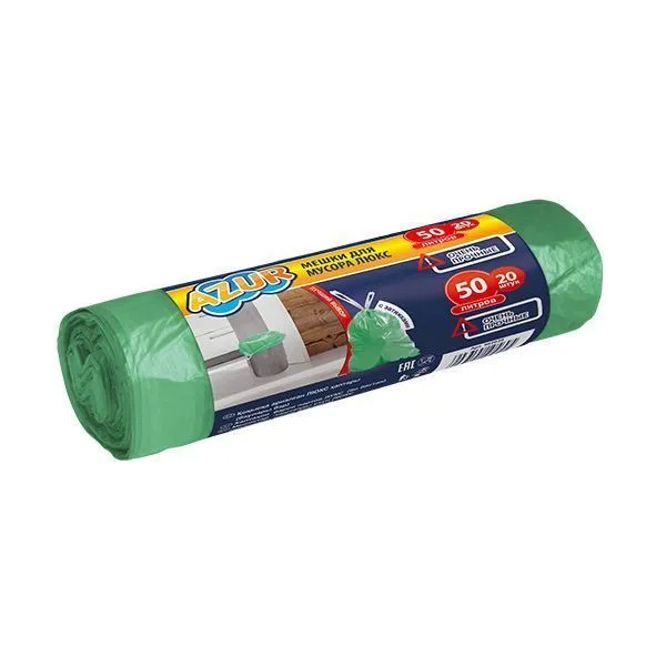 Мешок для мусора 50л (20 шт) зеленый люкс с завязками