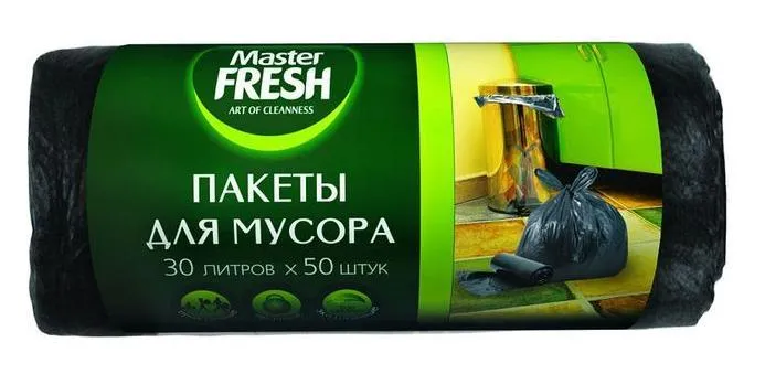 Пакеты для мусора 30 литров, 50 штук (ЧЕРНЫЕ) 7мкм Master FRESH MFGB30–50R