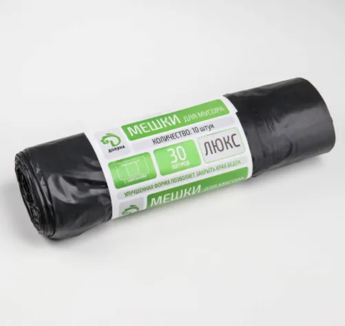 Мешки для мусора ПВД с завязками 30 л "Люкс", толщина 25 мкм, рулон, цвет черный, 10 шт 4069362