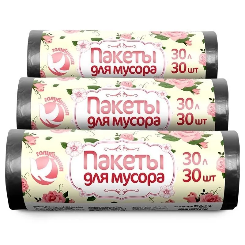 Пакеты для мусора ГОЛУБУШКА, 30л, 30шт (50)