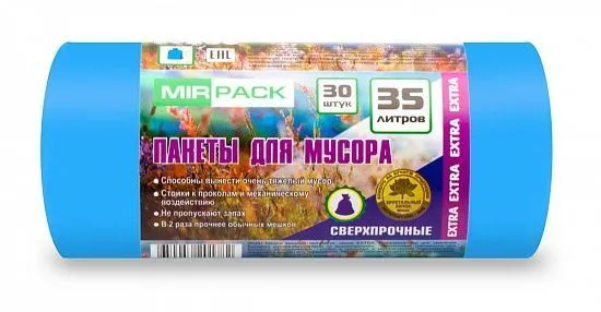 "EXTRA" 35 литров, в рулоне 30 штук, ПНД, 12 мкм, размер 50х64 см, синие