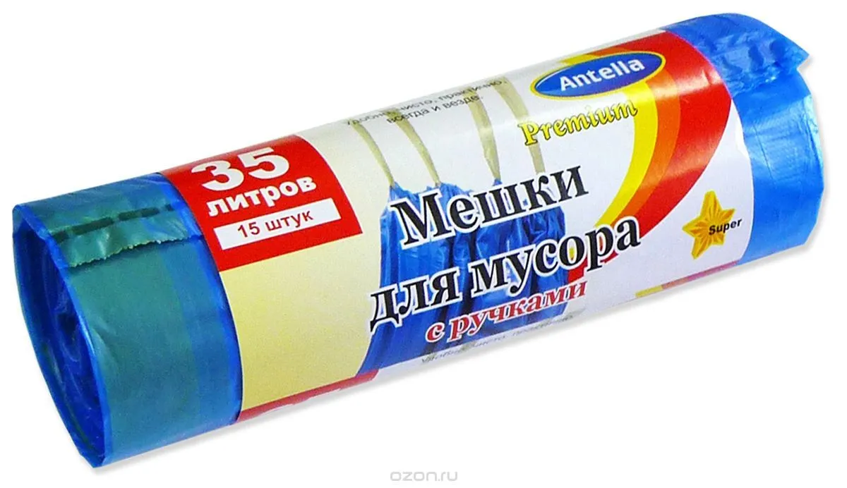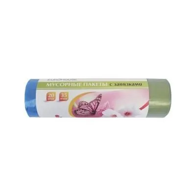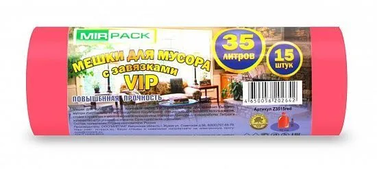 "VIP" с завязками 35 литров, в рулоне 15 штук, ПНД, 15 мкм, размер 50*60 см, красные