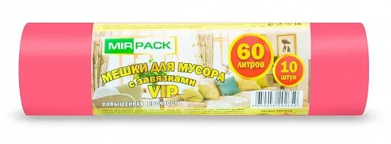 # "VIP" с завязками 60 литров, в рулоне 10 штук, ПНД, 15 мкм, размер 60*70 см, красные