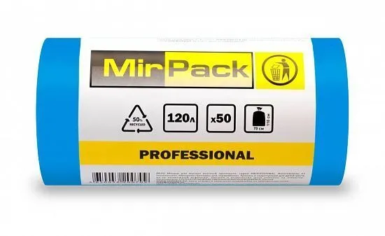 "PROFESSIONAL" 120 литров, 50 штук в рулоне, ПНД, 15 мкм, размер 70*110 см, синие, B2B