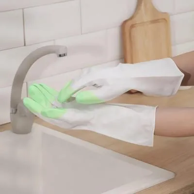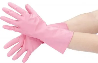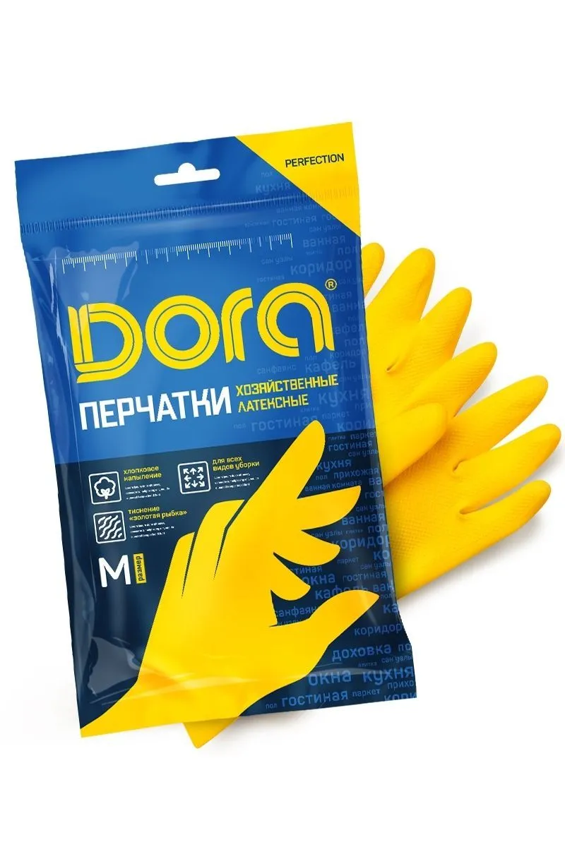 #Перчатки латексные Dora с хлопковым напылением "Универсальные" (240) (Цвет перчатки: Желтый, Размер: M)