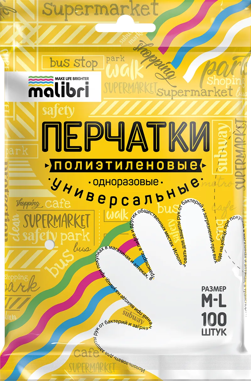 Перчатки полиэтиленовые Malibri "Универсальные", 100шт (100)