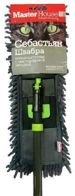 Швабра Себастьян с насадкой из микрофибры (шениль) 43*13 см, с телескопической ручкой 120 см, серая