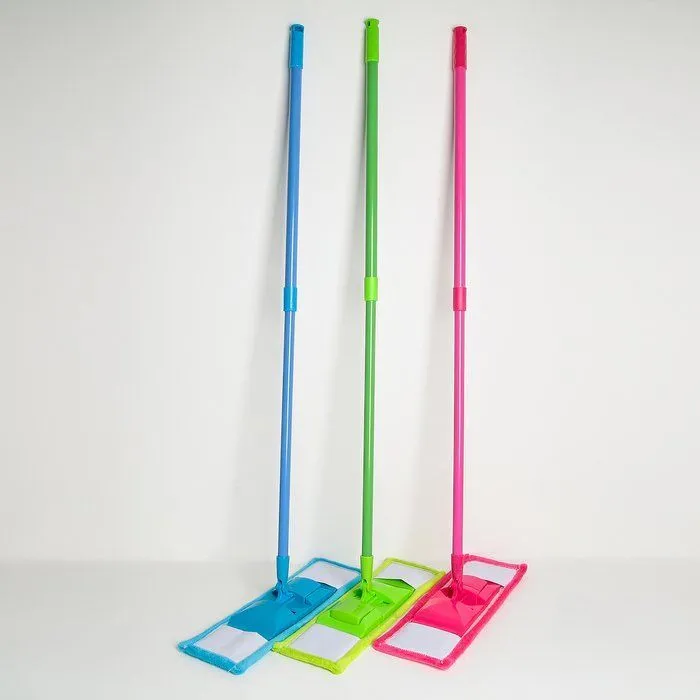 Швабра плоская, окрашенный телескоп черенок, микрофибра букля 43х14х80(130) см, МИКС 187944