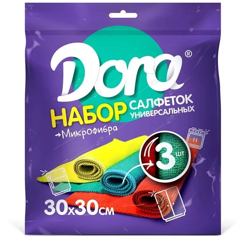 Салфетка из микрофибры Dora "Универсальная"30х30 см, 3 шт.