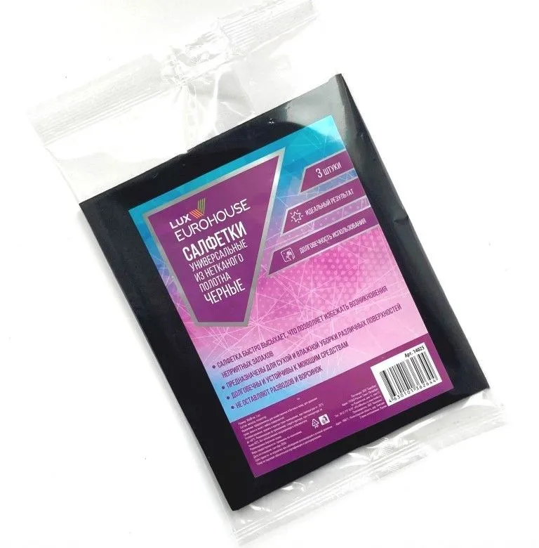 14025 Салфетки спанлейс ЧЕРНЫЕ, 30*38 см, 3 шт, LUX