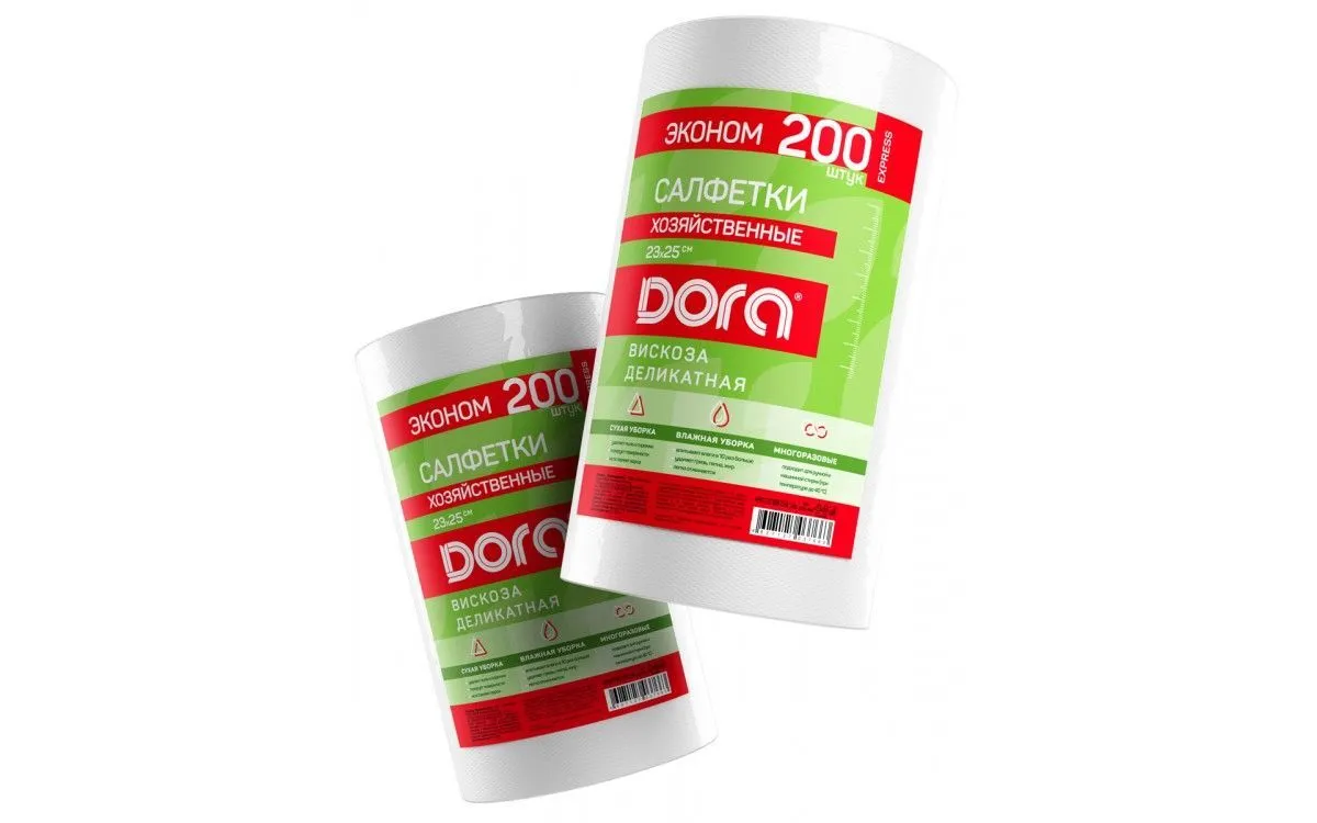 Салфетки из вискозы (спанлейс) Dora хозяйственные, 20х25см, 200шт, в рулоне