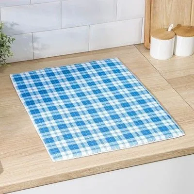 Салфетка для удаления грязи, пыли и сушки посуды "Клетка", цвет синий 38х50 см 7077299
