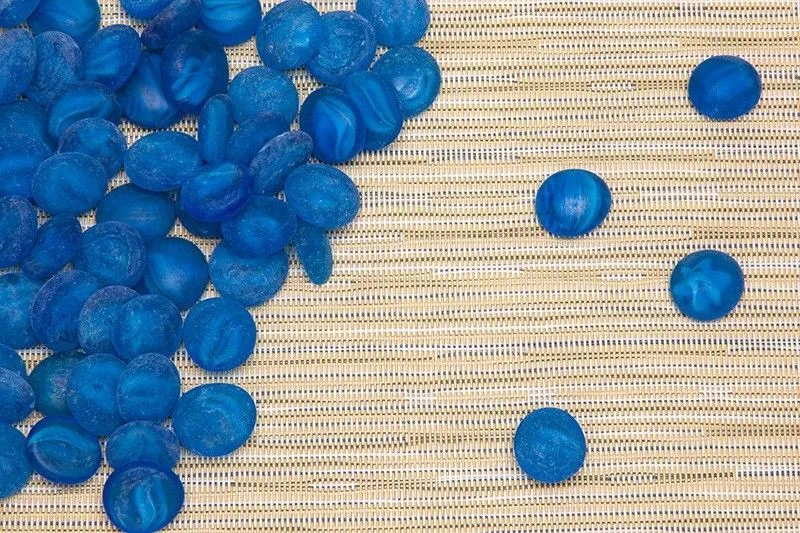 Камешки декоративные "Ягодки" ярко-синие, матовые, средний размер - 1,5*1,5*0,5 см каждый камешек, среднее количество - 50 ± 4 шт.