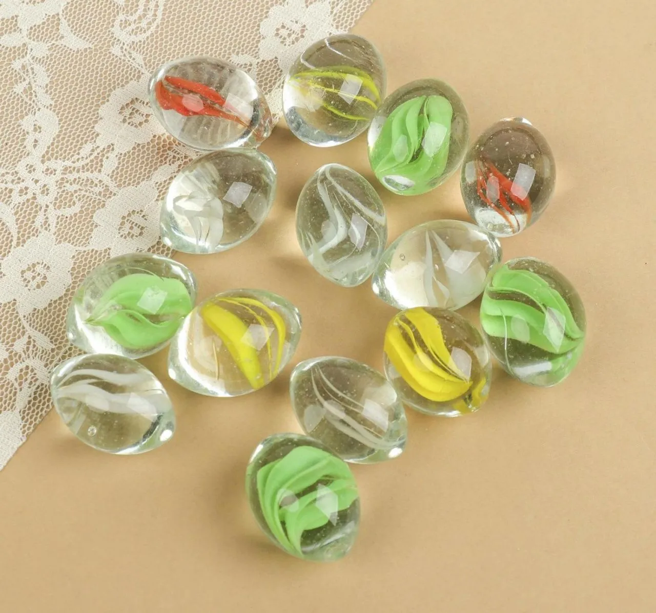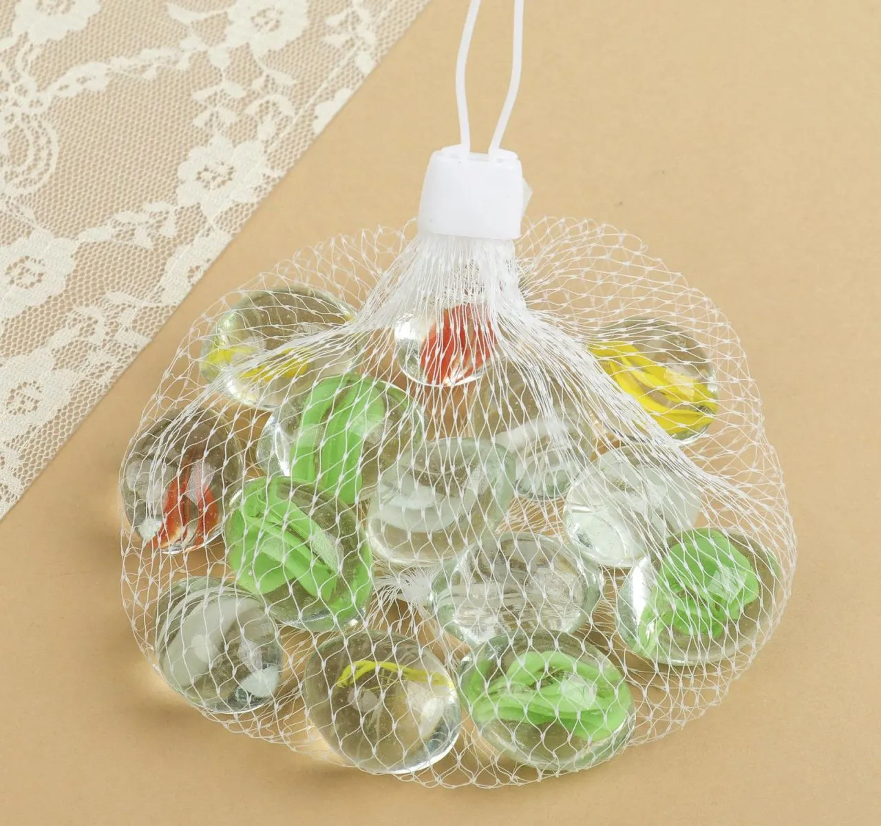 Камешки декоративные плоские "Разводы" с цветной полоской, цвет бледно-желтый K-100-18-0