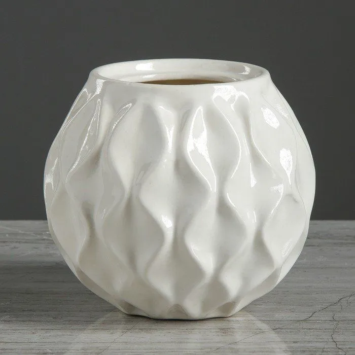 Ваза настольная "Шарик №3", рельеф, белая, 11 см 4290538