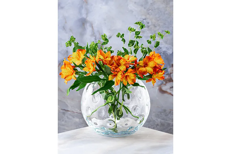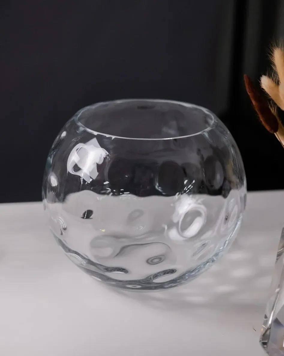 Ваза "Клио" прозрачная, 25*25*20 см, объём 6,5 л, ваза ручной выдувки с эффектом оптики, стекло