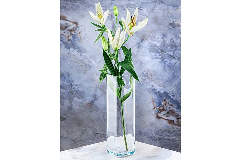 Ваза "Диона" прозрачная, 12*12*42 см, объём 5 л, ваза ручной выдувки, с эффектом сода (застаренность), стекло