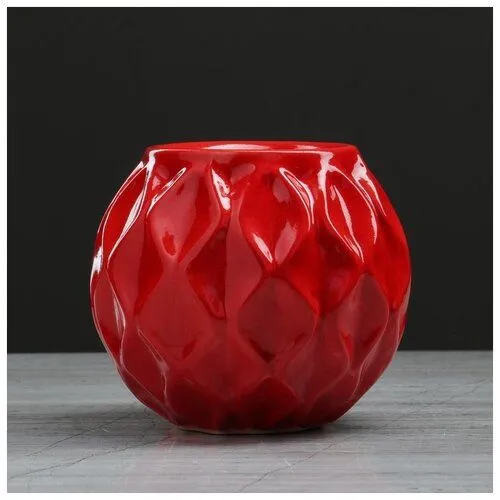 Ваза настольная "Шарик №3", рельеф, красная, керамика, 11 см 4855744