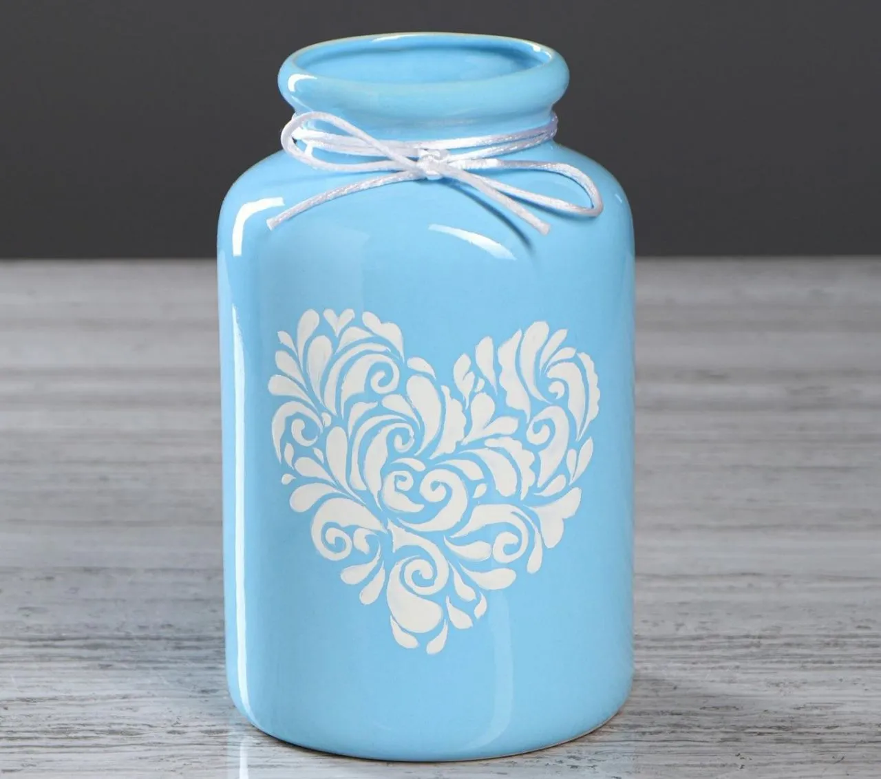 Ваза настольная "Бутылка с сердцем", голубая, 18 см 4929022
