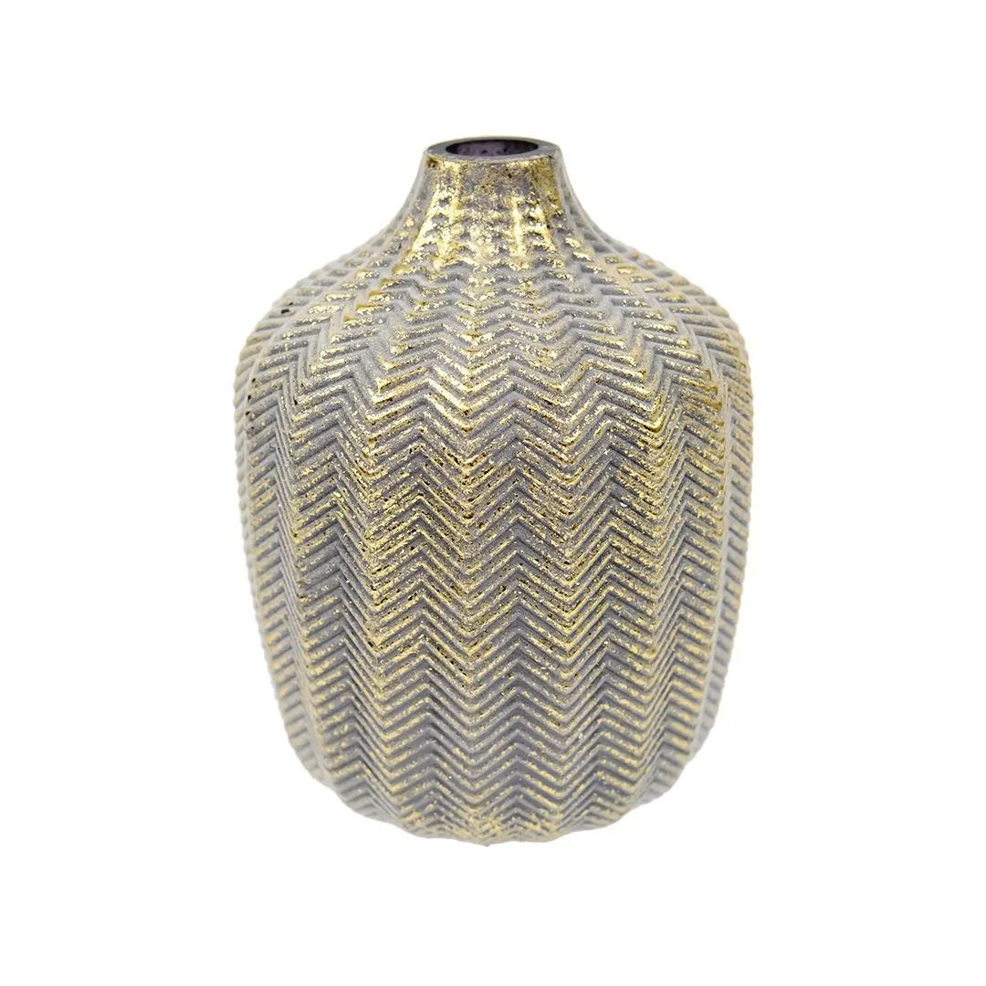 Декоративная стеклянная ваза, Д140 Ш140 В190, серый с золотым напылением