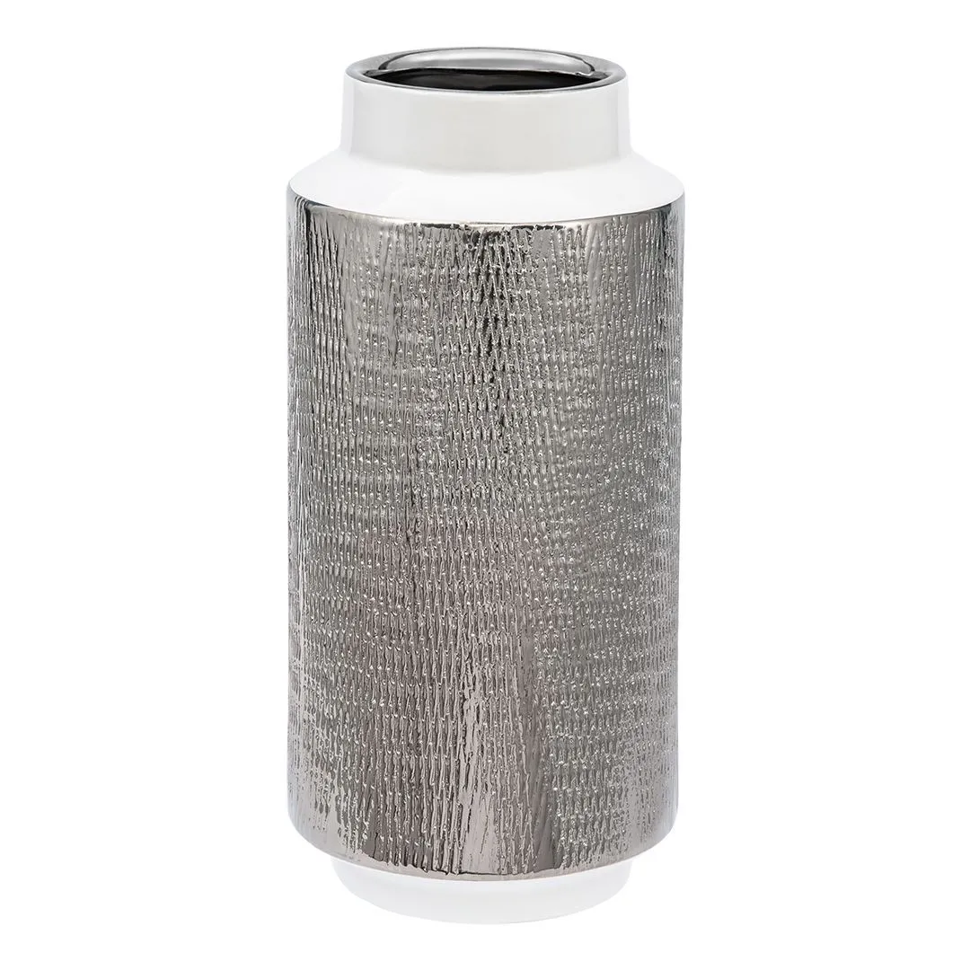 Декоративная ваза Контраст, Д140 Ш140 В300, белый с серебром