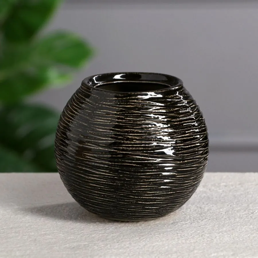 Ваза настольная "Шарик №2", чёрная, керамика, 11 см 4290541