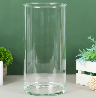 Ваза "Бочка" риф. h=26 см, d=8 см из прозрачного стекла (без декора) 1298282