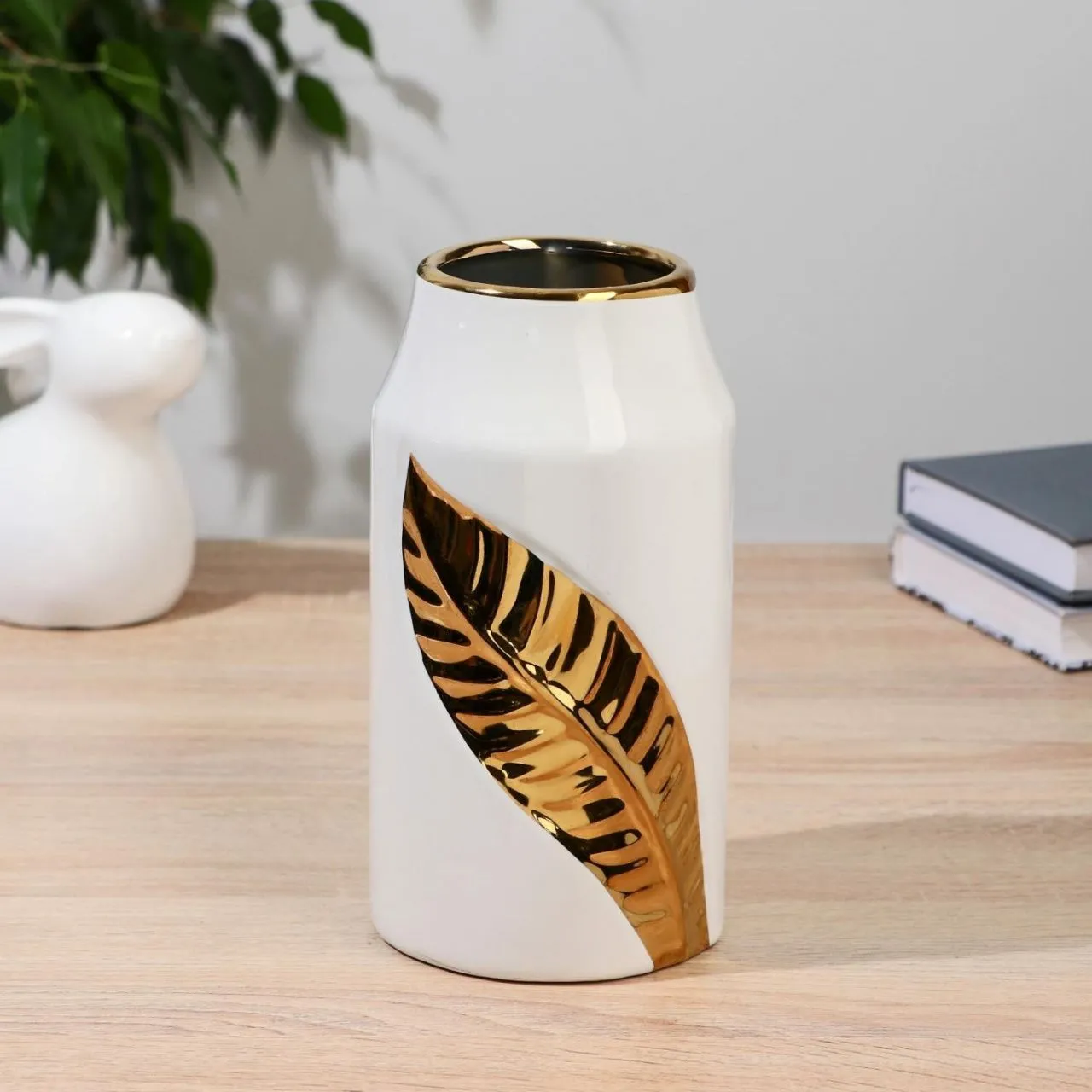 Ваза керамика "Анаит" d=8х10см, h=21 см, золотисто-белый 9499298