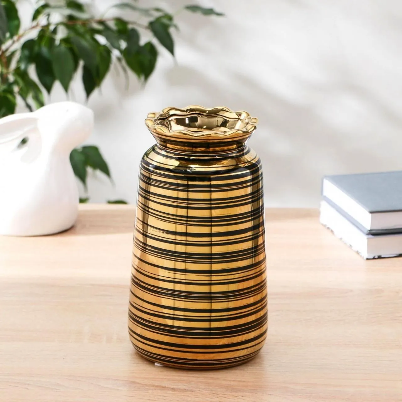 Ваза керамика "Альба" 11х20 см, d-6,5 см, чёрно-золотой 9061543