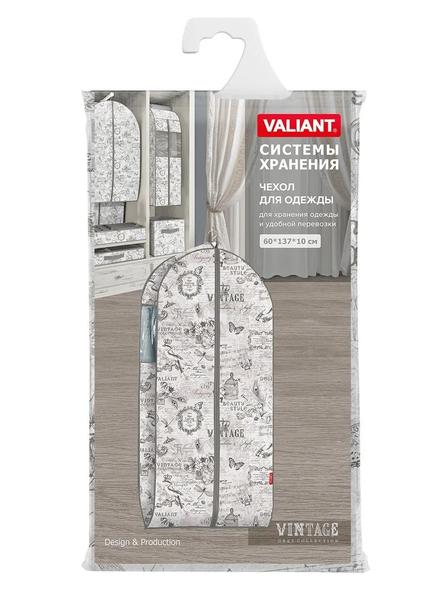 VAL VG-CV-137 Чехол для одежды объёмный с прозрачной вставкой, большой, 60*137*10 см, VINTAGE GREY