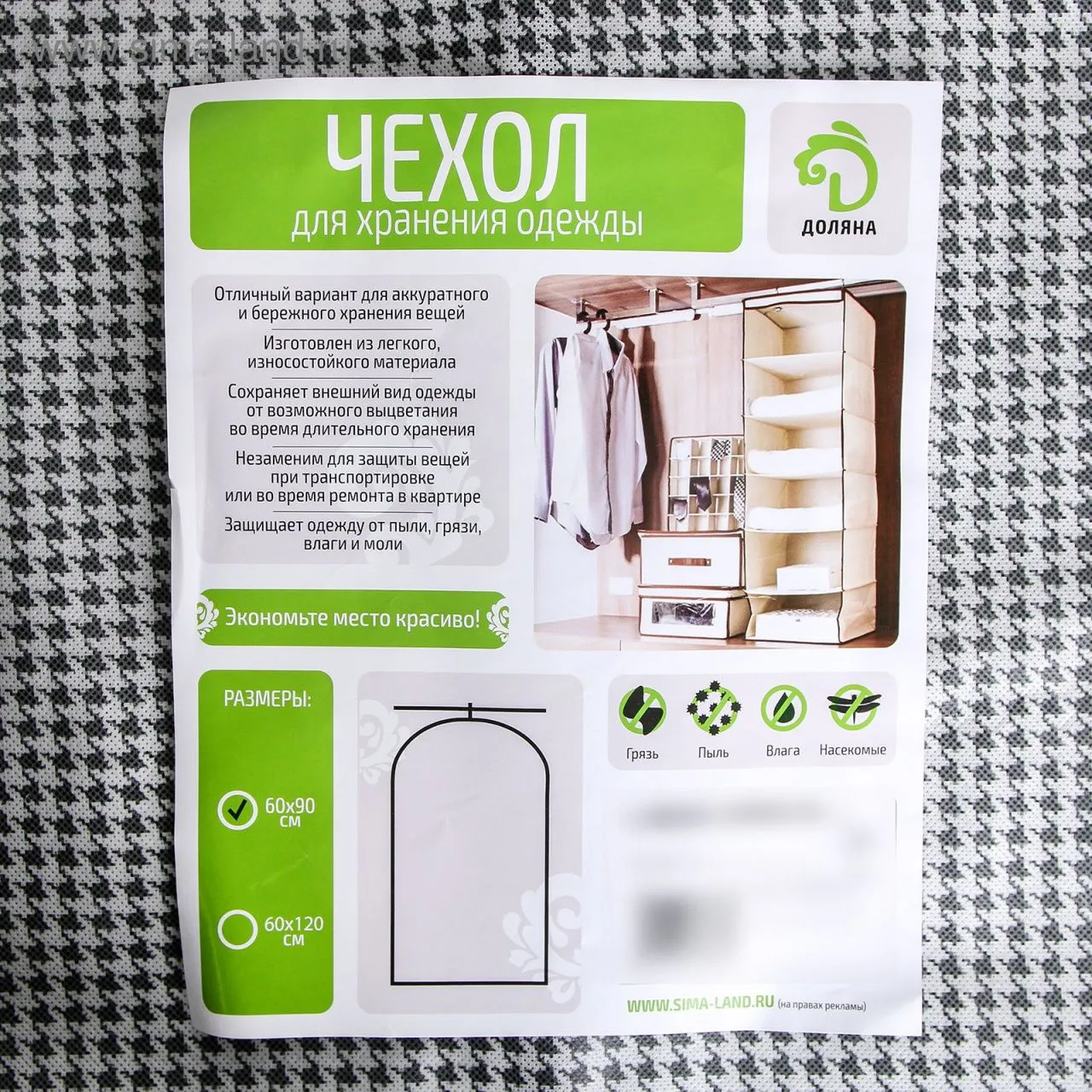 Чехол для одежды с ПВХ окном 90х60 см "Вилли" 3853183