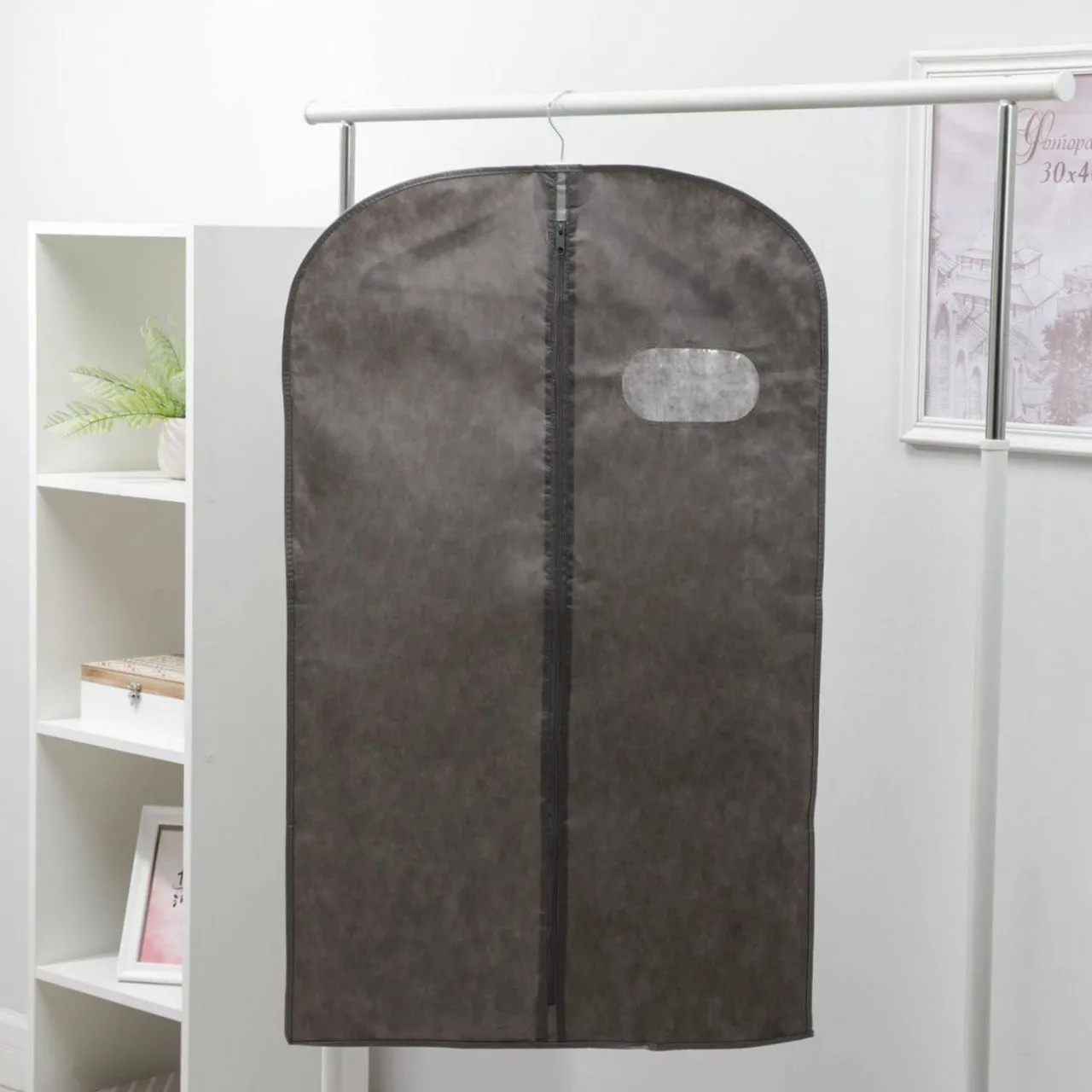 Чехол для одежды (ПВХ/спанбонд) 60*100см серый с окном 1143844