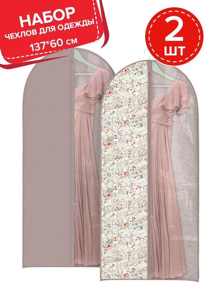 VAL BL-CW-S137 Набор чехлов для одежды с прозрачной вставкой, больших, 2 шт., 60*137 см и 60*137 см, BOTANIC LILAC