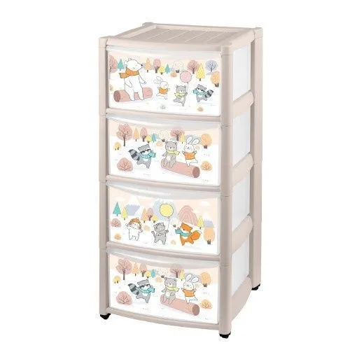 КОМОД ДЕТСКИЙ НА КОЛЕСАХ С ДЕКОРОМ ЗВЕРУШКИ НА ОПУШКЕ 4 ЯЩИКА (Светло-бежевый)