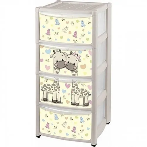 Комод детский на колесах с апликацией (4 ящика) бежевый