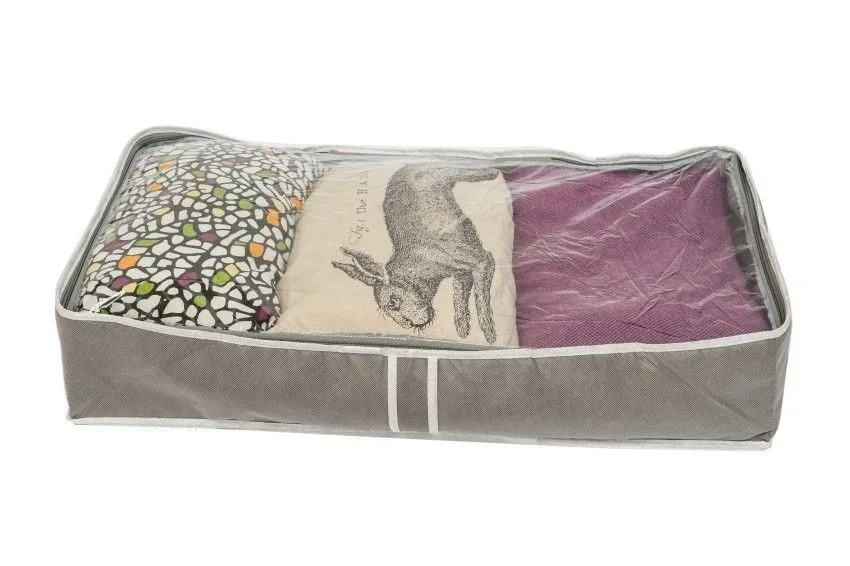 Кофр для хранения одеял и пледов "Совы на ветках на бежевом" 80*60*25 см., на молнии, с прозрачным окошком, с 2 ручками, состав - ткань