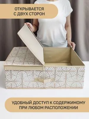Кофр складной для хранения "Перо павлина" бежевый 40*30*25 см с 2 ручками (стенки и дно плотные), состав - ткань